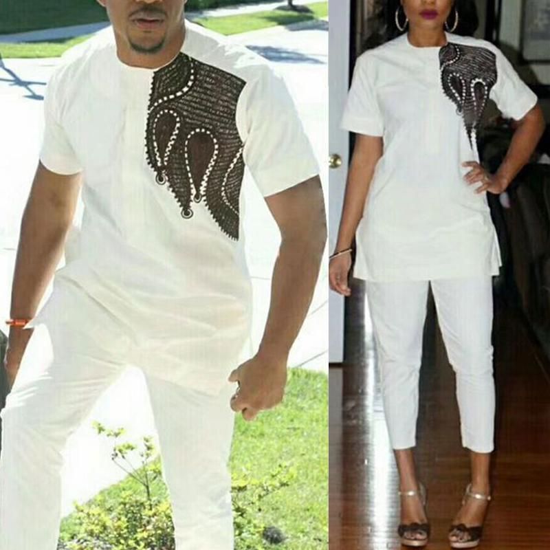 Compre Md African Pareja Cambio Blanco Ropa Blanca 2 Piezas Set Para Hombres Y Mujeres Bordado Dashiki Camisa Pantalones Traje De Manga Corta Tops A 19 12 Del Fsk05 Dhgate Com