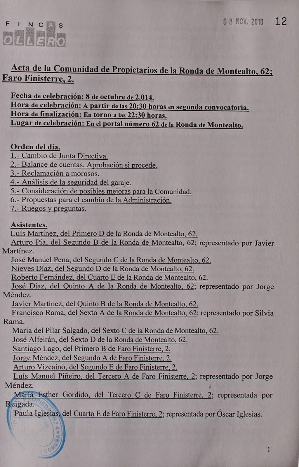Comunidad Propietarios Montealto Acta De La Ultima Reunion