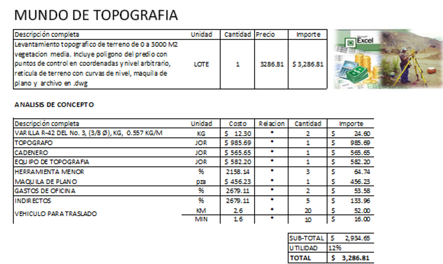 Analisis De Precios Unitarios Para Trabajos Topograficos Mundo De Topografia