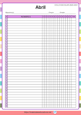 Control De Asistencia Diaria Mensual En Word Excel Inicial Primaria Secundaria Material Para Maestros Planeaciones Examenes Material Didactico Y Mas Educanimando