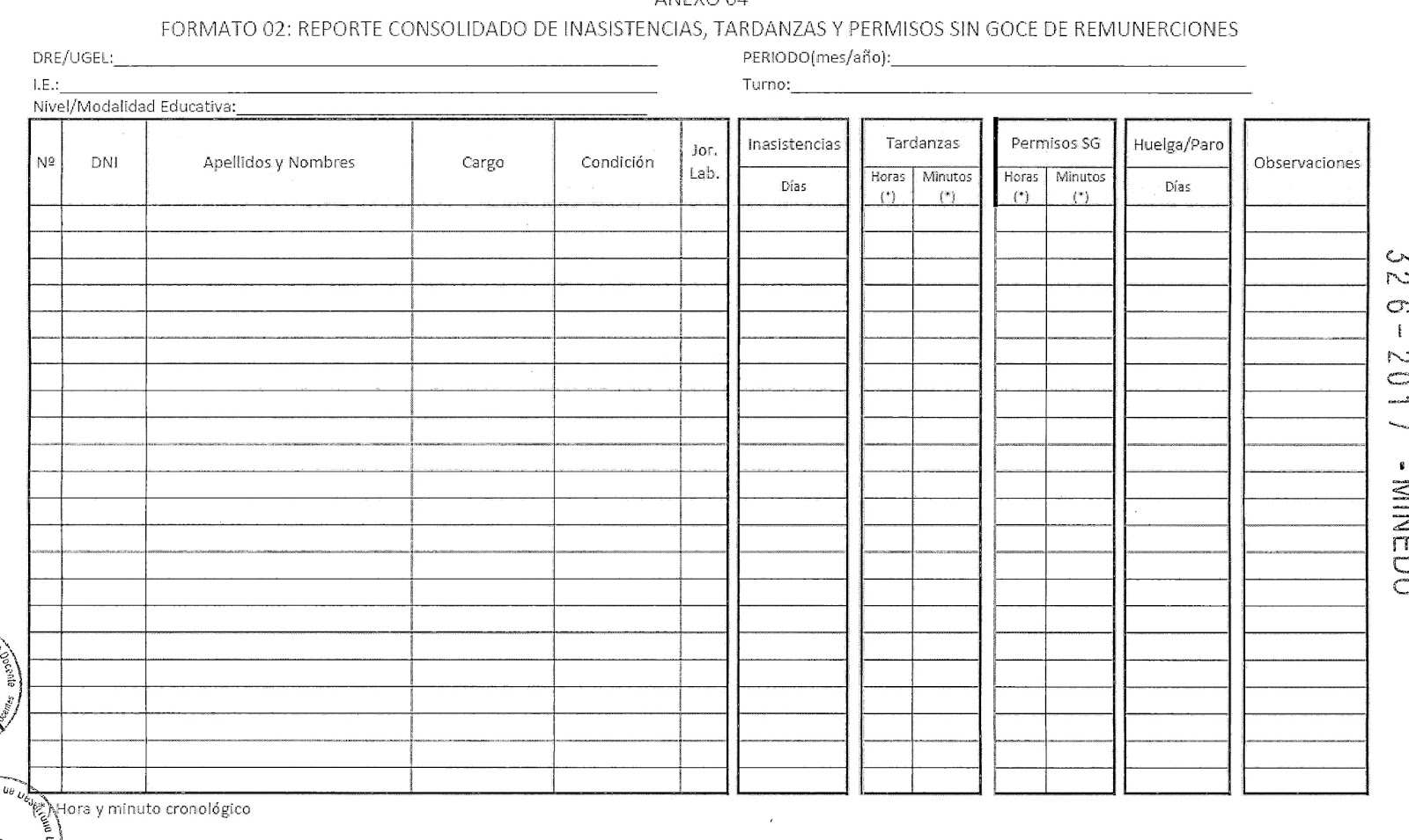 Formatos De Asistencia Del Personal Docente Y Administrativo Ugel Sanchez Carrion
