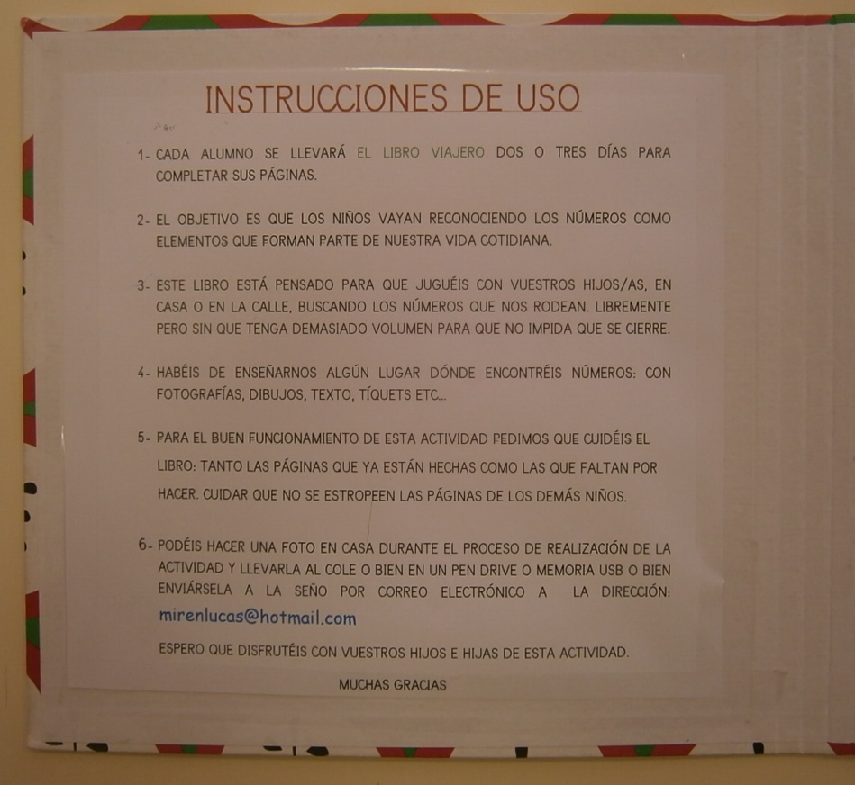 Cuaderno viajero 1 Docentes del Nivel Inicial IEP San Columbano 2 En el CUADERNO VIAJERO los niños describirán y pegarán fotos familiares (paseos, actividades en casa,etc) y decorarán sus páginas con alguna técnica gráfico – plásticaLos papitos completan alguna información anotándola brevemente al pie de cada foto. Ya es más que conocido el LIBRO VIAJERO ABN para 5 AÑOS que hicimos en mi Colegio E I "El Faro" de Algeciras, donde mis niños/as a partir de una imagen, creaban un problema matemático A raíz de éste, han sido muchos los docentes que han demandado un Libro Viajero ABN para otros cursos, quedando vacíos los niveles de 3 y 4 años. Portadas bonitas, páginas en blanco o a rayas, marcadores o sobre trasero.