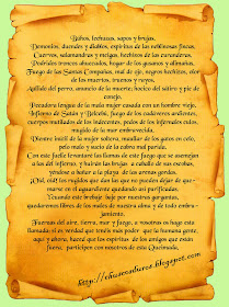 Conjuro de la queimada gallega Buhos, lechuzas, sapos y brujas Demonios, duendes y diablos, espíritus de los nublados campos Cuervos, salamandras y hechiceras CONXURO EN GALLEGO, CASTELLANO E INGLES 14 (3) diciembre (1) octubre (1) mayo. Haced que los espíritus de los amigos que están fuera, participen con nosotros de esta queimada CONJURO DE LA QUEIMADA EN GALLEGO Y EN CASTELLANO Reviewed by rocio on 5/05/14 Rating 5. Espíritos das neboadas veigas, corvos, pintegas e meigas;.