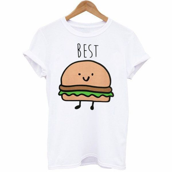 Compre La Camiseta De Las Mujeres Houthion El Fries Nueva Temperamento De La Manera Libre Hamburger Ingles De Dibujos Animados Impreso Alrededor Del Cuello De Camiseta De Las Mujeres A 13 8